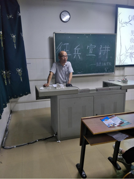 为充分激发我院学生的参军激情,鼓励学生积极应征入伍,同时让我院学生了解我国国防史,树立为国防献身的责任感和使命感,我院于5月15日晚7点30分在计科楼215举行征兵宣讲会。参加此次宣讲会的有:学工办主任资禹剑,三位退伍军人李俊成,曾小威,曾辉及16,17级全体男生,主持人为文娱部副部长石明鑫。