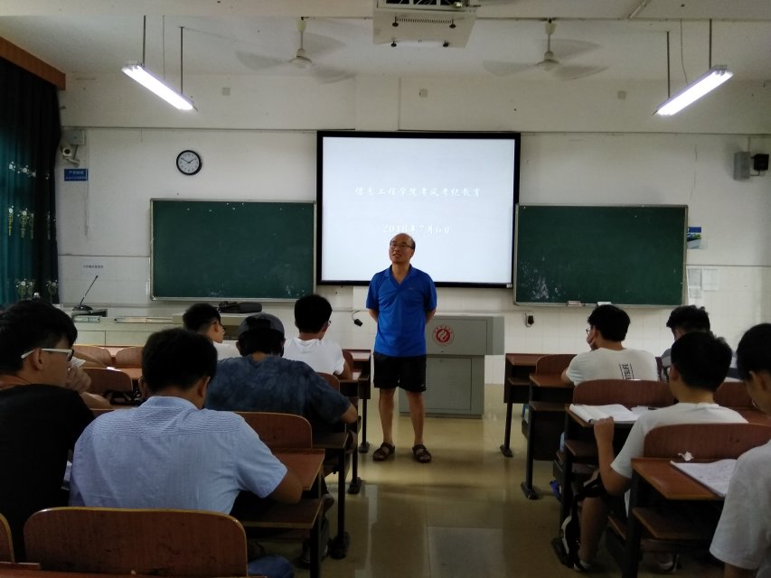 2018年7月6日下午四点半,为了严正考风考纪、保证考试公平公正,让同学们意识到考试舞弊的严重性,我院于计科楼215教室举办2018年上学期考风纪风教育会议。主讲人为学工办主任资禹剑。17级全体学生参与此次会议。