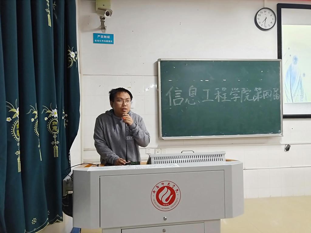 2018年11月29日晚七点半,信息工程学院在计科楼211教室开展了第四届团学分会第三次全体学生干部例会。例会主讲人为辅导员邓明智,全体学生干部及各班班委、寝室长参加了此次会议。
